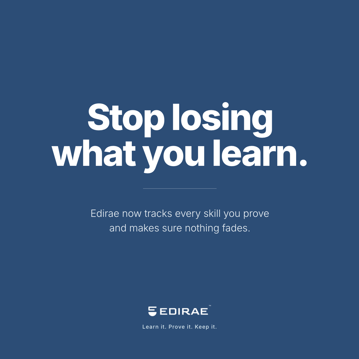 The difference isn't semantic. A Proven Skill means you demonstrated genuine understanding — not that you clicked "next" enough times. And once it's in your profile, Edirae doesn't just store it. It tracks it. The platform monitors your retention over time and knows exactly when a Proven Skill is starting to fade from memory.